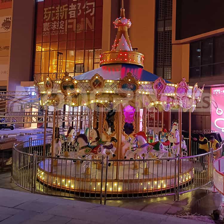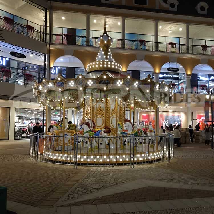 旋转木马是一款经久不衰的游乐设备,可用于室内公园、室外公园和旅游景点。是每个游乐场所的常见项目。不仅受孩子们的喜爱,也符合年轻人的浪漫情怀,随着夜间经济的发展,游乐设备不仅仅是局限于白天,夜晚的旋转木马更具神秘色彩;声光影的结合,骑上飞马驰骋,游客仿若踏上华丽的冒险之旅。
